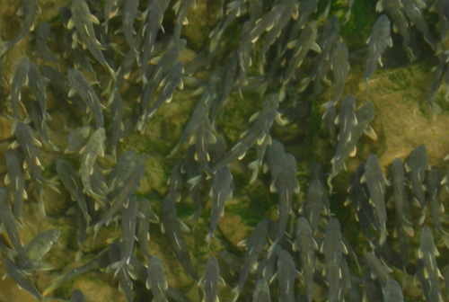 且不论基因如何,暂不说分群怎样,仅从色别来看,刚察境内哈尔盖河、沙柳河、泉吉河、吉尔孟河和布哈河等五条青海湖主要注水河流里的裸鲤却各有不同,可以说,家族式的“群居”生活在这里表露的一览无遗。素有“黑美人鱼”之称的青海湖裸鲤仅在哈尔盖河能得一见,其身短、翅稍白,背身显黑色,腹略白;而沙柳河则盛产“白唇墨鱼”,其唇白较之其他差异明显;游经布哈河的裸鲤大多脊背显黄或通体呈黄金色,腹部发白,与其他支流裸鲤在色斑上分别较大,其名曰“金龙鱼”,不但色别大,其生长年限也较其他河流裸鲤长,故原来刚察当地的渔民有“打鱼要到布哈河”之说;吉尔孟河中裸鲤虽与布哈河有极其相似之处,但其背略灰,当地人称之为“青海青”;泉吉河裸鲤类似泥鳅,背部分布密集圆点状,且两侧有大小不一、类似飞舞彩蝶般花斑,翅显红,名“黑脊彩斑鱼”。