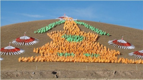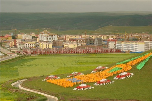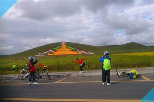 来自湖北的自行车爱好者在梵语林卡景点拍照留念