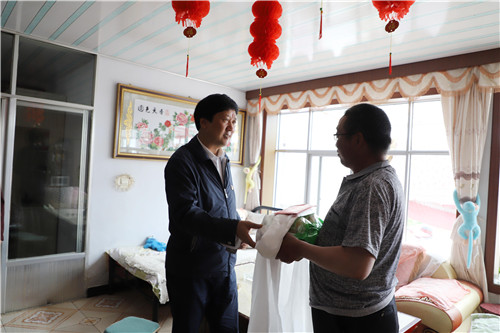7月18日,州政协副主席、县委书记拉科赴哈尔盖镇塘渠村慰问老党员谈生福,送去了慰问金和慰问品。