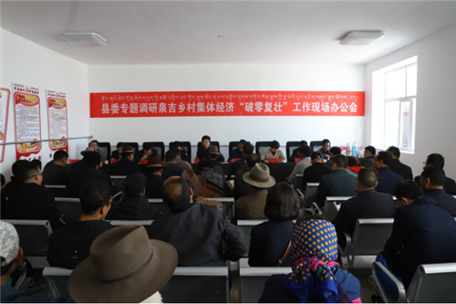 拉科书记一行首先对全县31个行政村党员活动室建设、办公设施配备等情况进行了调研,在充分肯定活动室取得成效的同时,强调要充分建设好、利用好活动室阵地,让广大党员在优质舒适的办公环境下开展工作,使其能更好地发挥出基层组织战斗堡垒作用。调研期间,还与各县级联乡联村领导、乡镇党政主要负责人和分管领导、村“两委”班子成员、扶贫第一书记和驻村工作队等进行了座谈,分别听取了各村村集体固定资产“三资”情况通报,村集体经济“破零复壮”计划等,对各村提出的村集体经济“破零”的思路从资金投入、人才技术、市场需求、发展前景等方面进行了面对面讨论分析,对已趋向成熟的项目计划给予了肯定。拉科书记指出,目前刚察县村集体经济发展存在经济体悬殊大、不平衡,发展模式以农牧养殖主业多、新型产业少,人才支撑缺、发展动力弱等问题,尤其是村“两委”班子对发展集体经济思路不清、定位不准、办法不多、措施不力。拉科书记强调,发展村集体经济是当前工作的重中之重,乡村两级干部要有思路、有办法,认真梳理发展村级集体经济过程中遇到的问题和困难,打破传统发展的思路束缚,在发展其他的产业上下功夫,凸显自己的特色。要积极发挥村“两委”的“领头雁”作用,坚持以增加村集体经营性收入为重点,统揽全局、指导工作,充分利用现有资源和群众在集体经济发展中的好想法、好建议,理清发展集体经济的资金不等同于扶贫资金这个基本概念,实现从一般产业“跳出来”,向第三产业“走出去”,防止产业“同质化”,从而形成“一村一策”“一村一品”的特色村集体经济,实现发展策略多样化、渠道多元化,切实增强村集体经济内生动力。