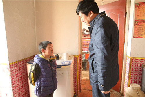 慰问建档立卡贫困户看太措,并与其子交谈,了解学习情况