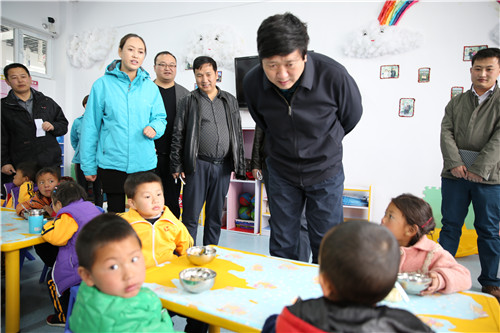 图为拉科书记一行在沙柳河镇中心幼儿园视察调研。
