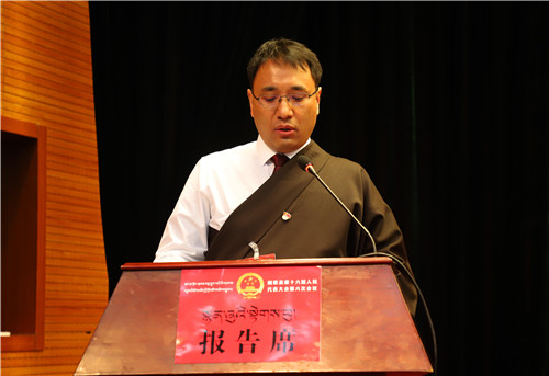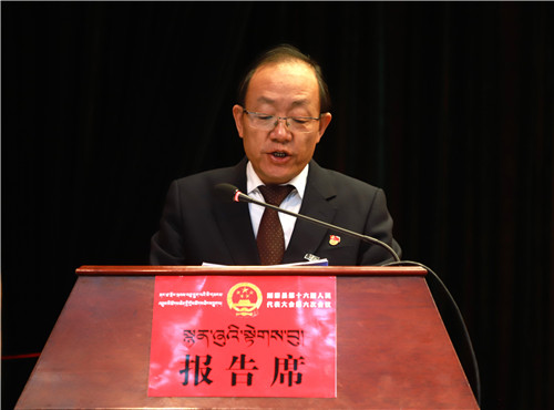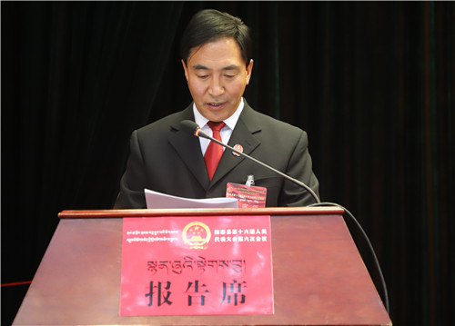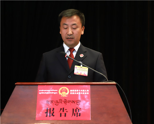 县委副书记、代县长斗拉代表县人民政府作政府工作报告。