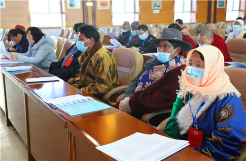 县政协主席秦士福,副主席杜东、色拉嵌巴、贾得伟在主席台前排就座。秦士福代表政协刚察县第十三届委员会常务委员会向大会作工作报告,杜东主持开幕大会,贾得伟作县政协十三届委员会常委会关于县政协十三届五次会议以来提案工作情况的报告。