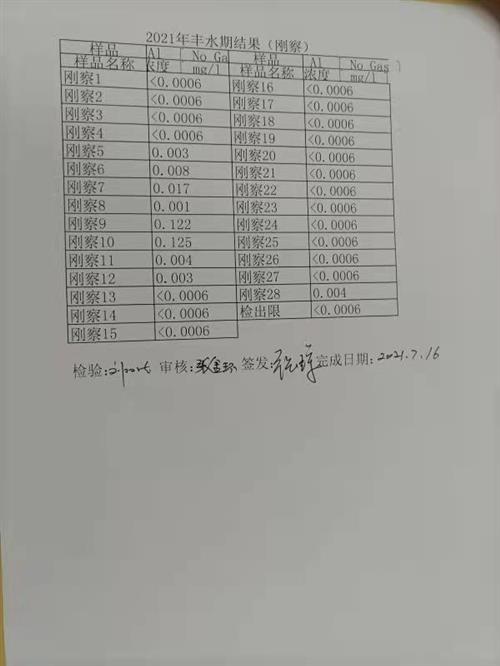 2.2021年饮用水监测项目刚察枯水期、丰水期结果