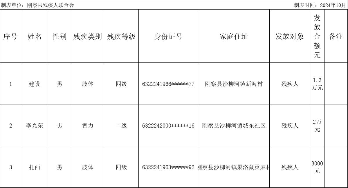 2024年度刚察县第二批困难残疾人大病救助公示表