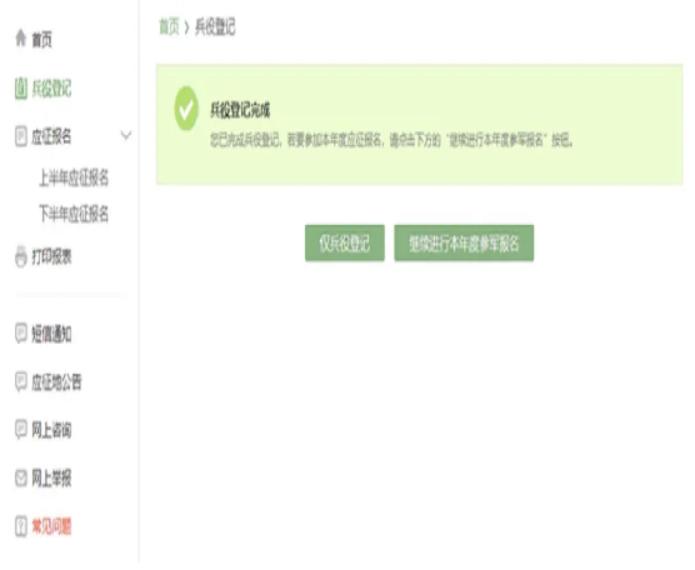 另:在全国征兵网报名时,注册时如果提示身份证号码重复,请按征兵网提示尽可能找回已有账号;已经参加兵役登记、应征报名的可联系应征地兵役机关协助找回。