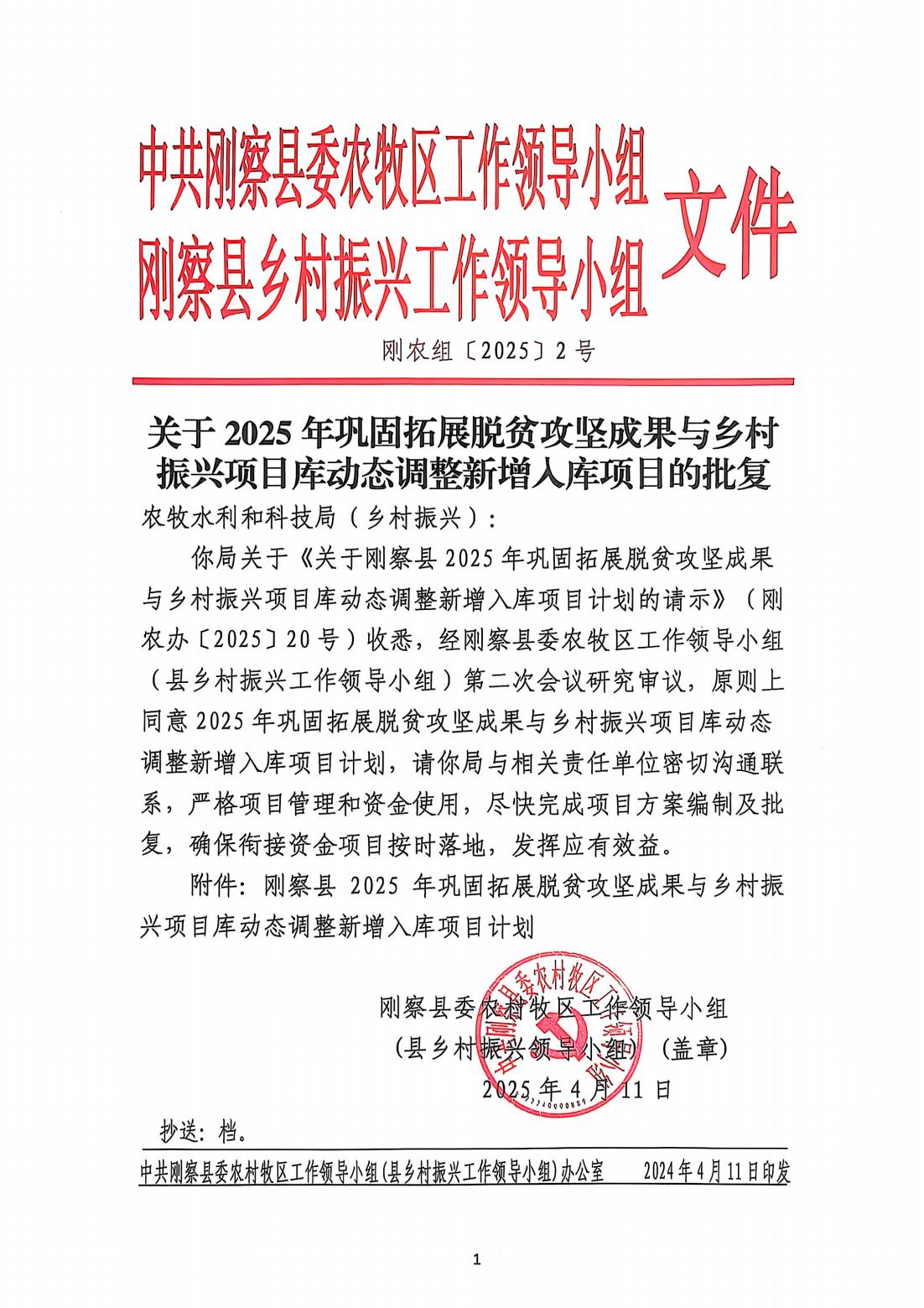 经刚察县农牧水利和科技局研究审核,现将关于《2025年巩固拓展脱贫攻坚成果与乡村振兴项目库动态调整新增入库项目的批复》公示如下。