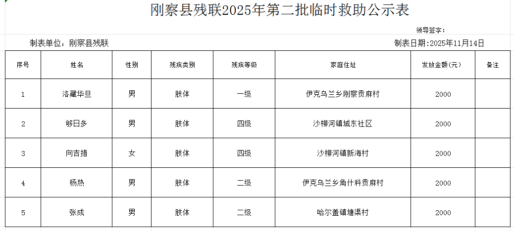 刚察县残联2025年第二批临时救助公示表