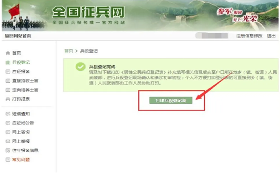 兵役登记完成后,打印《男性公民兵役登记表》。