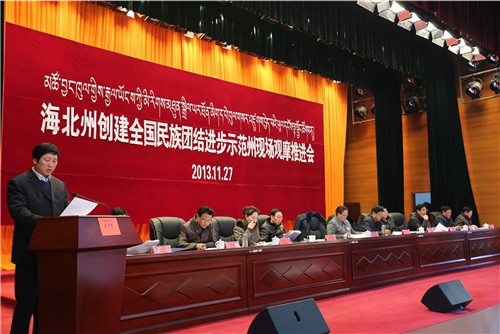 11月27日,为期两天的海北州创建民族团结进步示范州现场观摩推进会在刚察成功落下帷幕。本次现场观摩推进会由海北州创建全国民族团结进步示范州活动领导小组办公室主办。参加本次现场观摩推进会的人员有州委书记尼玛卓玛、州委副书记王振昌及州人大、州政府、州政协、州委宣传部、州委组织部相关负责人,州直各部门负责人,各县委书记、县长、统战部部长、各县创建办专职副主任、各乡镇党委书记,青海湖农场场长、创建办主任等110余人。
