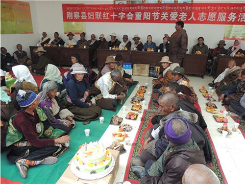 活动期间,县藏医院的医生为老人们进行了义诊,并发放了药品。紧接着的民族团结茶话会把活动推向高潮,县妇联和县红十字会还贴心的准备了两个大蛋糕,并分好送到每个藏族老人面前。两村的老人们相互祝福,其乐融融,现场洋溢着一片欢乐祥和的气氛。老人们激动的说:感谢党和政府的关怀。从这些可爱的老人身上体现了我县民族团结的和谐氛围。此次活动还为老人们送去了营养品、生活用品等,折合人民币2400元。