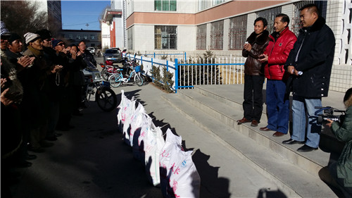 “两节”前夕沙柳河镇恩乃村为贫困牧户发放救济粮