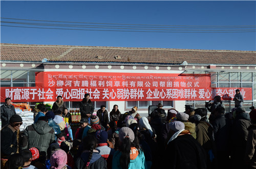 吉腾福利饲草料有限责任公司成立以来,积极救助贫困户、残疾人、孤儿以及帮扶贫困大学生,五年里共捐赠了100万元左右的物资,公司还解决了一些困难人员就业。员工才太加最初靠打工为生,靠公司帮助下到养鸡场工作现今买了房子;大学生久谢加正在靠公司资助的生活费和学费读大学。