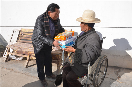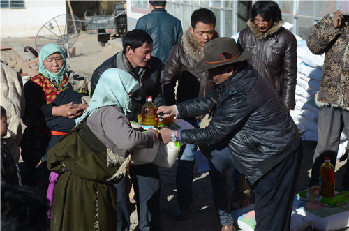 冬日的寒流抵不过爱心的暖流,近日,吉腾福利饲草料有限责任公司董事长切杨仁增带领员工举办了帮困捐物仪式,随后又前往敬老院献爱心送关怀。此次捐赠了面粉、米、衣物、菜籽油、牛奶等共3万元左右的物资。在春节来临之际为弱势群体送去了冬日里的温暖,让他们度过一个祥和的节日。