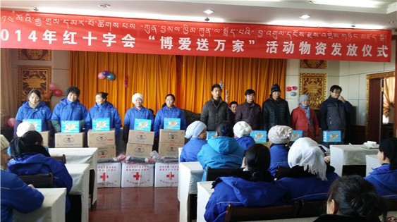 刚察县红十字会2014年度“博爱送万家”活动物资发放仪式在沙柳河镇举行
