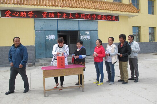 近日,泉吉乡选派干部得知此事后,在乡党委、政府的支持下,在组长陈金同志的带领下,组织开展了“爱心接力”活动,泉吉乡选派干部纷纷慷慨解囊,为卡木太卓玛同学捐赠了6000元资助金。同时,承诺一定要将这一爱心接力活动传承下去,只要卡木太卓玛好好学习,一定要帮扶到她读完大学为止。活动期间,学校教师也自发的为圆卡木太卓玛同学的求学梦进行了捐款。