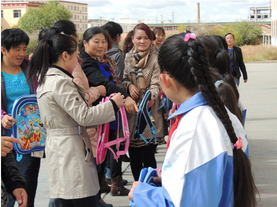 活动现场,“爱心妈妈”集体宣誓,表示将用爱心履行社会责任,用奉献诠释志愿精神。来自各行各业的“爱心妈妈”与被帮扶儿童现场结对、赠送礼物。黄玉婷小朋友刚刚从“爱心妈妈”楚亮手中接过她盼望已久的新书包。高兴地说到:“我有两个妈妈,一个是我的亲妈妈,一个是我的爱心妈妈,她们都很爱我,我觉得很幸福,等我长大以后,我也要向她们一样,奉献爱心,帮助别人。”