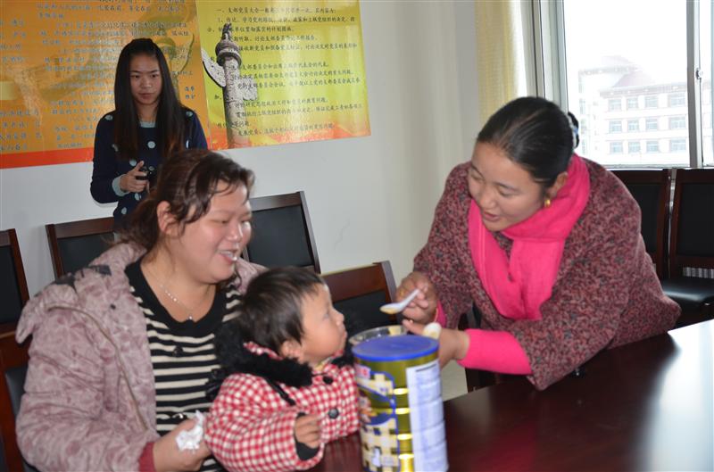 11月12日,刚察县妇联联合县妇幼保健站在县妇联会议室举办了一场以“关注儿童早期发展”为主题的儿童营养改善项目营养包及奶粉发放活动。活动现场县妇联及县妇幼保健站工作人员为70名适龄儿童发放了营养包盒,并为其中的贫困家庭儿童发放了奶粉60余盒。在发放营养包的过程中,工作人员还为领取营养包的儿童家长详细介绍营养包所含的营养成分、作用以及服用方法,并向他们普及科学喂养知识。
