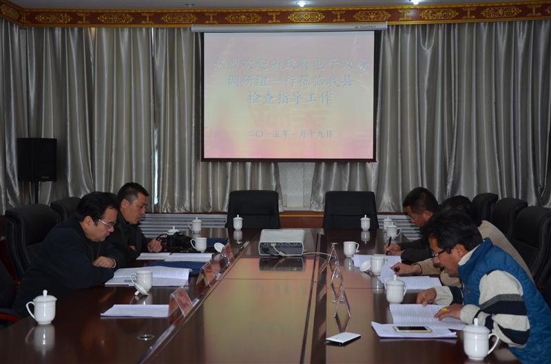 1月19日,省政府电子政务办公室主任周洋城,省政府电子政务办公室副主任艾海成一行二人来我县调研电子建设和政府信息公开工作。县委常委、宣传部部长杜东,县委宣传部副部长、县新闻中心主任贡宝东智,县政府办公室副主任金永清一并陪同调研。