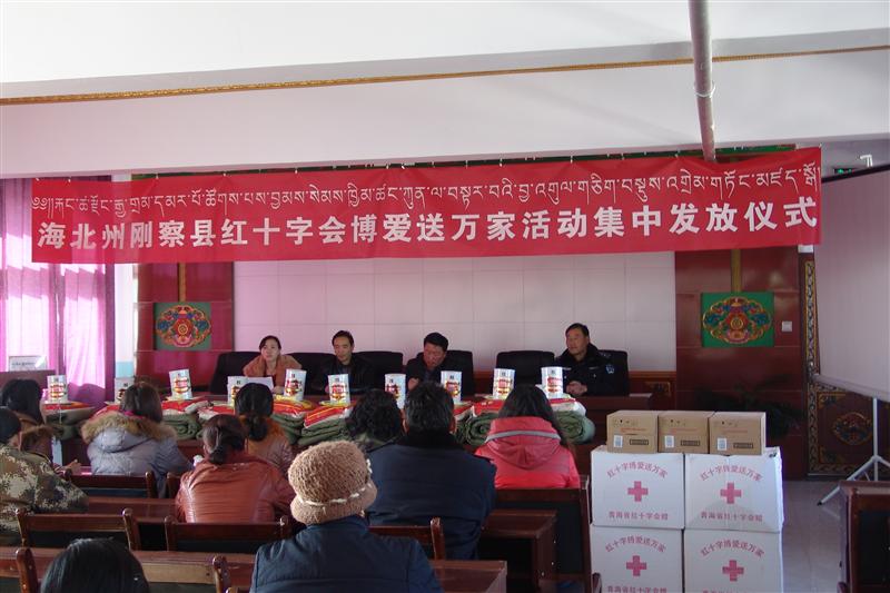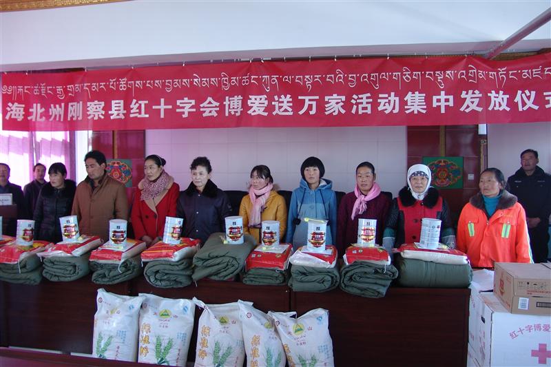 海北州、刚察县两级红十字会联合开展2015年“博爱送万家”活动物资集中发放仪式
