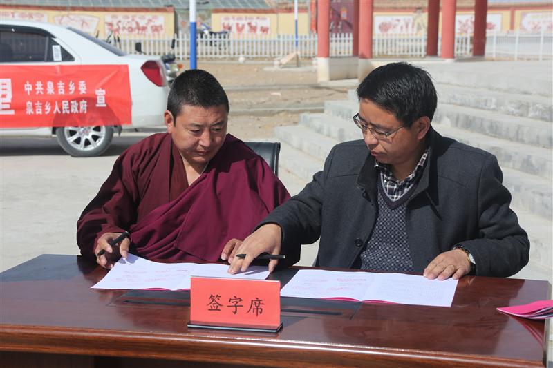 同时,在集会现场乡政府乡长李万录同志与6个行政村、1个机关社区、2座藏传佛教寺院以及7个乡属单位共同签订友好村邻(社区、寺院、机关单位)结对共建协议书,发扬中华民族睦邻友好、互帮互助、谦和忍让的传统美德,今后积极开展节日互访慰问、生产互帮互促、文体联谊、协商解决矛盾纠纷和扶困帮贫活动,共同取长补短、团结进步,以友好村邻(社区、寺院、机关单位)结对共建推动民族团结进步创建工作。