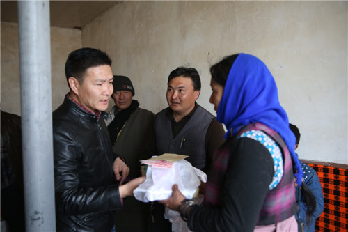 2015年4月15日,刚察县委常委、县政府副县长尕玛才旦在县政府办公室主任才旦,哈尔盖镇党委书记谢军、县残疾人联合会理事长才旦加的陪同下深入哈尔盖镇环仓秀麻村和果洛藏贡麻村,分别赴联点村特困户、孤寡老人、残疾家庭户进行走访慰问,把党和政府的温暖送到困难群众的心坎上。每到一处,他与群众亲切交谈,详细了解他们的家庭生活、身体健康状况、收入支出等情况,鼓励他们努力克服生活中所遇到的困难,同时叮嘱随行人员要把困难群众的需求放在心上,切实关心困难群众,让他们实实在在地感受到党和政府的关怀,此次慰问共送去慰问金3600元。受助群众纷纷表示,感谢县委、县政府的关心和帮助,将努力克服困难,自力更生,把日子过得越来越好。