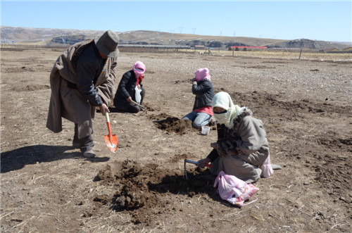每年4月,广大群众带着铁锹、食品袋、水、馍馍等工具和食物纷纷奔向农田采挖蕨麻。4月13日,记者跟随群众深入到田间地头,详细了解今年的蕨麻采挖情况。据了解,采挖蕨麻主要是自家食用和增加家庭收入为主。据采挖蕨麻群众才让介绍说:“今天我们一家5口骑摩托车来采挖蕨麻,主要是以此增加家庭收入。这几年,我们基本上每年都在这个季节来这地方采挖蕨麻,又时候每天一个人可以挖到5到6斤,又时候也挖不到1斤。听说今年的蕨麻收购价每斤在20元左右,根据今年的情况这个月我们家可增加3000元左右的收入。每年这个时节,在这地方采挖蕨麻的群众每天可达2、3百人,是我们当地群众一个很好的增收渠道”。