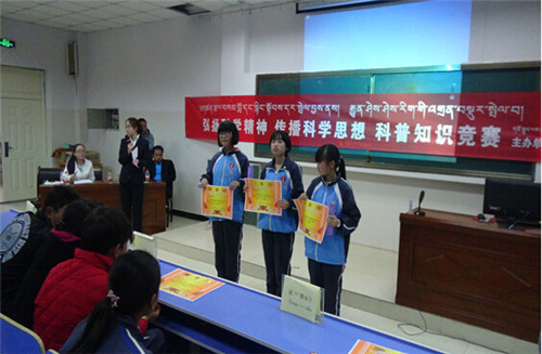 比赛题目分为四类,即:晋级抢答题、必答题、抢答题和风险题。问题的内容涉及社会科学、自然科学、人文地理、历史生物等基本科学常识。经过激烈角逐,八年级八班获得集体第一名,八年级六班、八年级四班第二名,八年级九班、八年级一班、八年级五班第三名;郭守珍获得个人一等奖,班马仁卓、才多吉获得个人二等奖。安雪琪、马晓霞、刘纪雨获得个人三等奖。