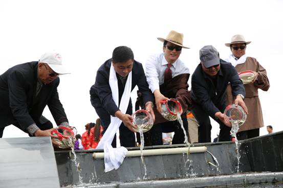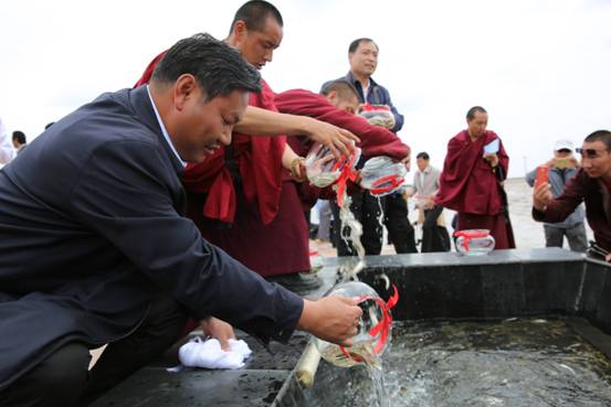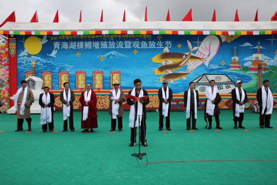 通过举办青海湖裸鲤增殖放流·青海湖观鱼放生节暨第四届仓央嘉措情歌音乐会,进一步弘扬民族传统文化,展示独特富集的文化旅游资源,全力打造全省最具影响力的文化旅游节庆活动。自2002年,我省开始开展人工增殖放流活动,到2014年底,已陆续放流入湖青海湖裸鲤原钟种苗8350万尾,通过多年来的封湖育鱼和开展大规模的人工增殖放流,青海湖裸鲤资源量得到恢复性的快速增长,已有2002年的2600吨恢复到现在的5万多吨。裸鲤资源量恢复性增长,为青海湖“人—鸟—鱼”共生的复合生态系统,构筑青海湖生态安全屏障、提高人文生态品味、促进全省经济社会可持续发展发挥了重要作用。人工增殖放流是修复青海湖受损生态环境,恢复青海湖裸鲤水产种质资源和生物多样性的重要举措之一,对于推进青海湖流域生态可持续发展具有重要意义。今天,将现场放流100万尾裸鲤苗种,到八月底,今年共计有1000万尾裸鲤苗种将陆续放流入湖。