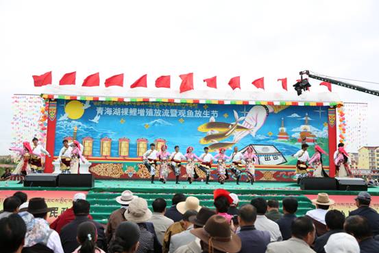第八届青海湖裸鲤增殖放流暨观鱼放生节开幕式演出现场