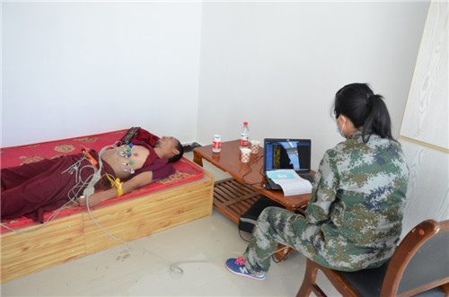 为刚察大寺的僧侣做心电图