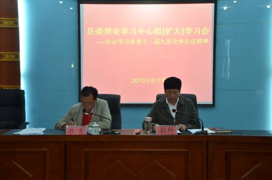 8月12日,县会议中心召开中心组扩大学习会,传达学习省委十二届九次全体会议精神。县委常委、宣传部部长杜东主持会议,县委理论学习中心组成员,全县县级干部,各乡镇、县直机关、群众团体副科级(含非领导职务)以上干部参加。