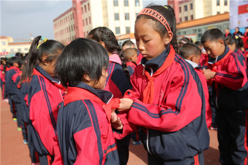 为纪念中国少先队员先锋队建队66周年,以培养学生主人翁的意识,培养新生的爱队意识,了解队史,掌握队仪,感受作为一名光荣的少先队员的神圣使命。教育学生继承和发扬中国少年先锋队的光荣传统,培养学生健康向上、积极进取的精神。增强学校少先队组织的力量,促进红领巾事业的蓬勃发展。近日,团县委、县少工委联合县教育局在沙柳河镇民族寄宿制小学隆重举行庆祝中国少年先锋队建队66周年暨“我是向上向善好队员”主题队日活动。州委常委、州委宣传部部长、州总工会主席高波,共青团海北州委书记霍均,县委常委、县委宣传部部长、县总工会主席杜东,县政府副县长哈文秀,县政府教育督学、县关工委主任周毛,共青团刚察县委、县教育局负责同志及全校1200余名少先队员及辅导员老师参加了活动。