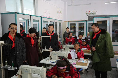 参加活动的领导参观了学校的文化墙、少队室、书法室、手工制作室、科学实验室