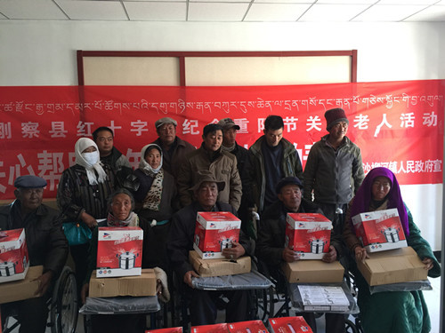 今年10月21日是我国传统的“重阳节”,也是我国政府确定的“老人节”、“敬老节”。为大力弘扬红十字会“人道、博爱、奉献”的精神,发挥红十字会关爱、帮扶困难弱势群体的特色,14日上午,刚察县红十字会在县卫生和计划生育局会议室组织各乡镇及社区家庭极度贫困的孤寡残老人代表开展了纪念重阳节关爱老人慰问暨免费义诊活动。