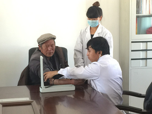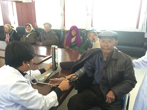 来自县藏医院的两名志愿者为老人们免费义诊