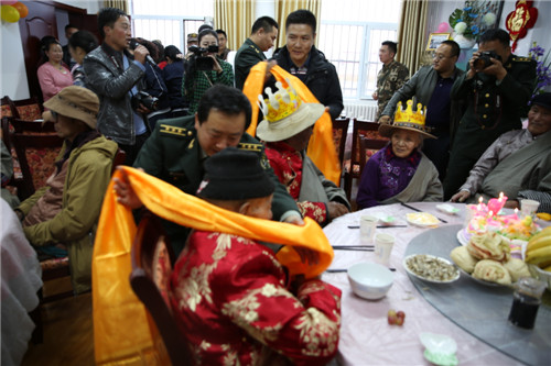 县委常委、县政府副县长尕玛才旦为老人送上最真挚的祝福