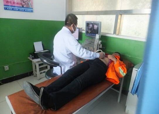 县医院医生正在为困难职工体检