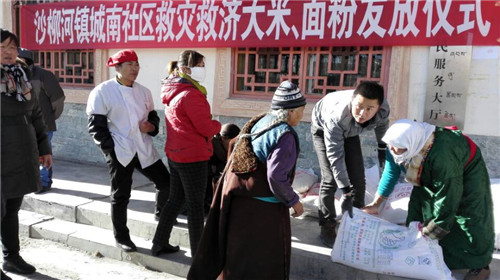 近日,沙柳河镇城南社区举行救灾救济大米、面粉发放仪式。给辖区内的50户城镇低保户、贫困家庭和残疾人家庭每户发放一袋大米和一袋面粉。