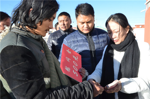 赤秀嘉姆文化雕刻产业有限公司单位负责人为贫困户送去慰问金500元