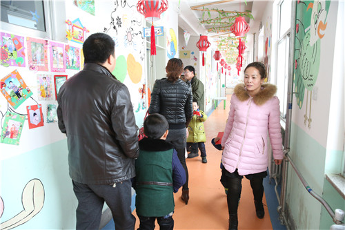在县中心示范幼儿园家长带领学生报到。