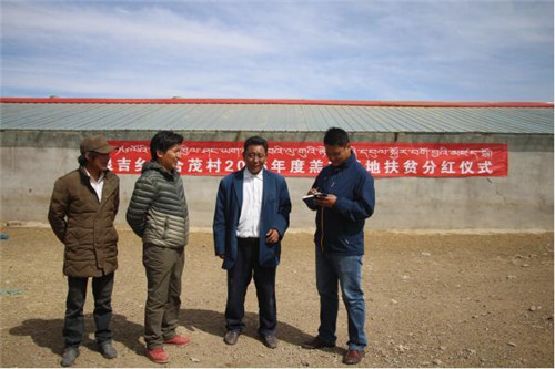 依托牧区资源优势,结合实际将“母畜周转”扶贫模式创新发展,通过母畜周转、羔羊分红,使各村贫困户通过母畜周转的渠道脱贫。5月10日,泉吉乡冶合茂村举办了2016年度羔羊基地扶贫分红仪式,2014年通过省级扶贫试验示范产业园羔羊产业基地下达该村1493只周转母羊,2015年已分红的建档立卡贫困户不再纳入2016年分红中,1493只周转母羊由村两委班子和16个实施监督小组组长统一管理,将周转母羊承包给贫困户,由村两委班子、各社社长或能人养殖大户作为担保人,每户养殖,集中分红。今年5月将200只母羊产的冬羔155只,分配给该村13户31人建档立卡贫困户,每人分红5只羔羊。此次分红的155只羔羊,主要对象为缺劳力、缺草场、缺牲畜的弱势群体,由村两委班子统一管理、经营,进行再次折股量化。剩余的1293只周转母羊产的羔羊,再次分为16小组32户,每户平均分配40只羔羊,由各小组组长统一管理,依此实施,形成投羊留羔分红收益的长效机制。