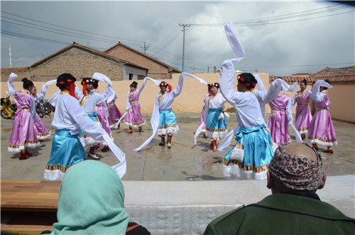 敬老院里传来了阵阵优美的歌声,那是仓央嘉措文艺队在为敬老院工作人员和住养老人们慰问演出。现场载歌载舞,热闹非凡,老人们个个满面笑容,处处洋溢着一片欢乐祥和的气氛。藏族舞蹈《康定溜溜的情》、歌曲《克鲁伦河》、吉他弹唱、酒曲等等精彩的表演赢得了老人们的阵阵掌声,演出和美好的祝福给敬老院的老人们送去了欢笑,让老人们真切的感受到了老有所乐,感受到了社会的关爱和温暖。