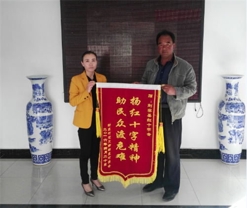 此举,得到了受助人员及新泉村两委的充分肯定,为了表示对红十字会救助的感激之情,新泉村党支部、村委会特意向县红十字会送来写有“扬红十字精神、助民众渡危难”的锦旗。