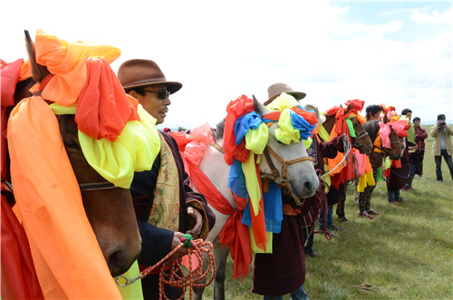图为乡党政负责同志为赛马比赛中获奖的选手颁奖并合影。