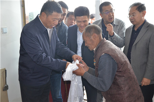 图为诺卫星厅长赴省民政厅精准扶贫定点联系帮扶村(沙柳河镇恩乃村)慰问贫困群众。