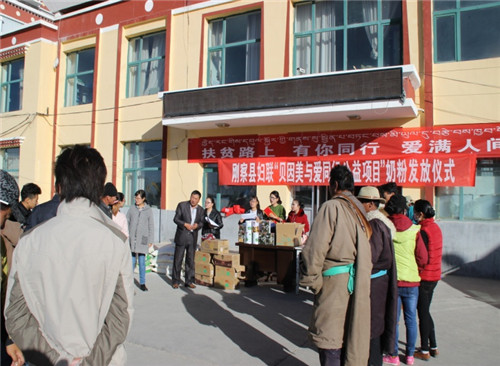 为泉吉乡精准扶贫村贫困家庭的孩子们送去贝因美奶粉