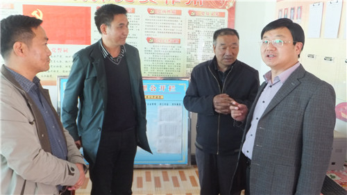 图为县委常委、组织部部长袁有成在县诚信种植养殖协会实地察看党员活动阵地建设情况。