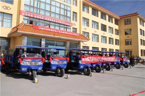 10月26日下午,沙柳河镇举行精准扶贫产业发展项目农用车发放仪式,县扶贫局代表、镇主要领导及果洛藏贡麻村、新海村“两委”负责人及8户受益贫困户参加仪式。